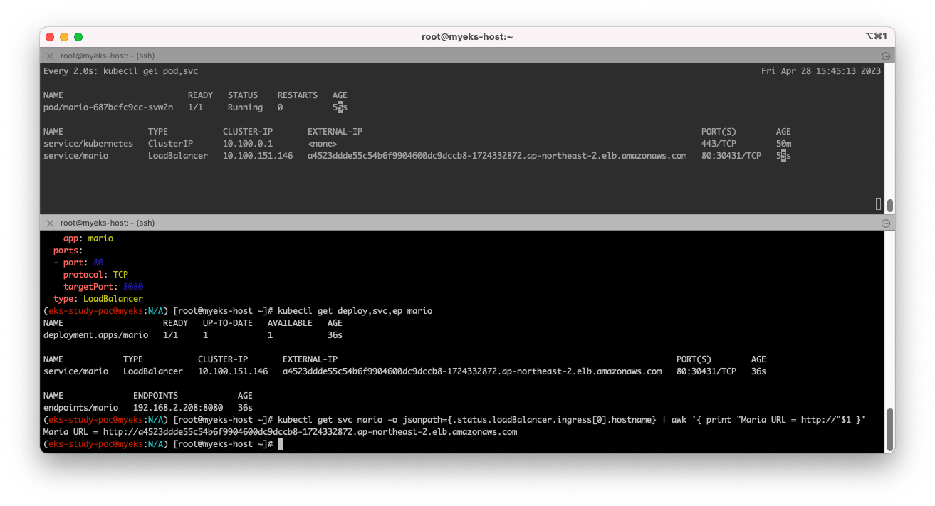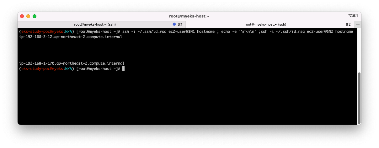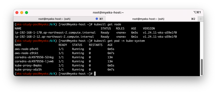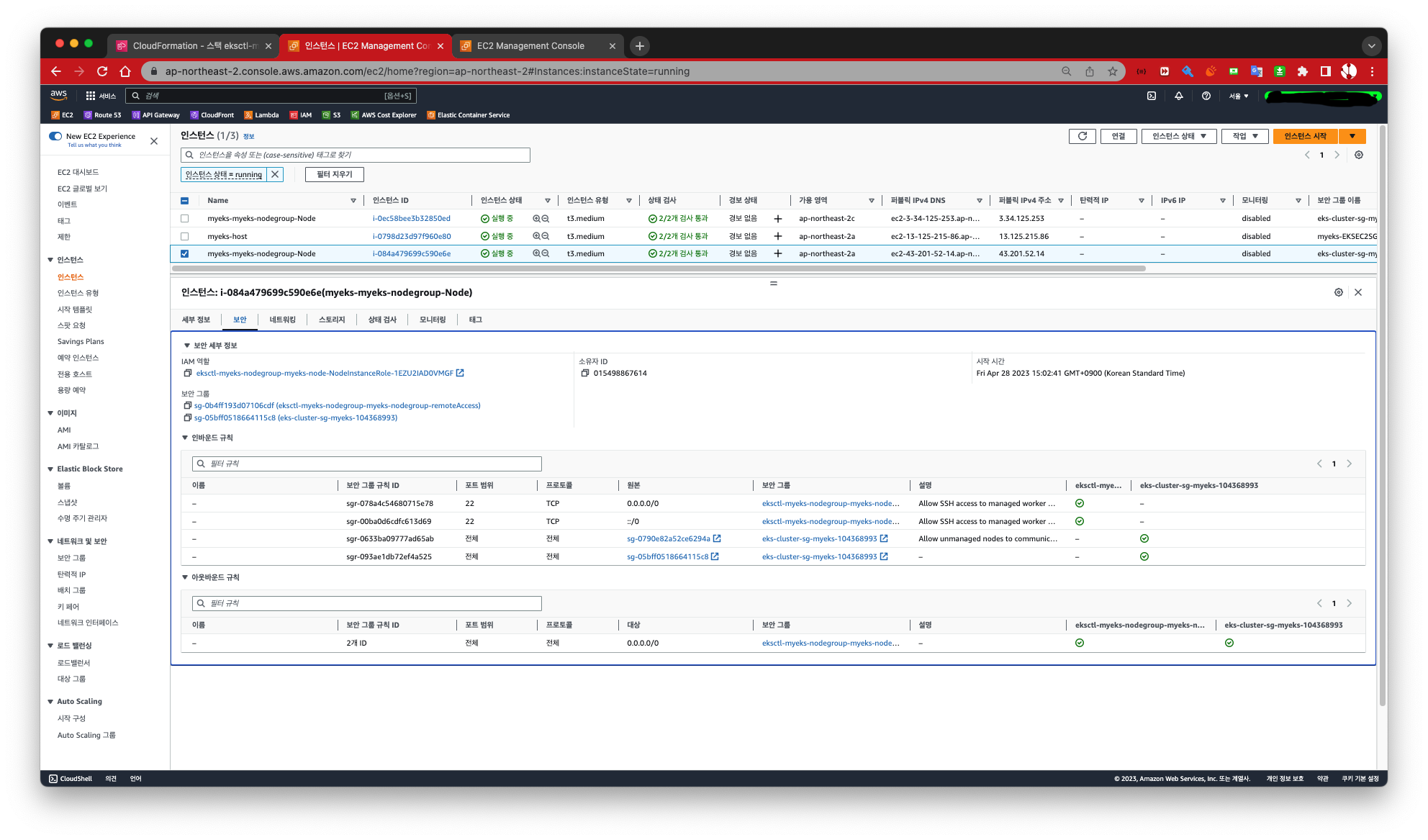 실제로 만들어진 클러스터에서, 노드그룹에 해당하는 인스턴스와 어떻게 통신하는 지 봅시다.