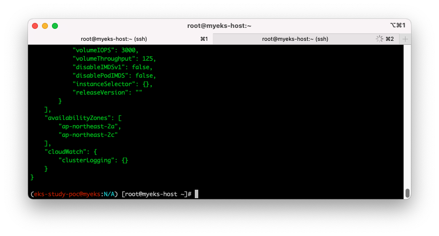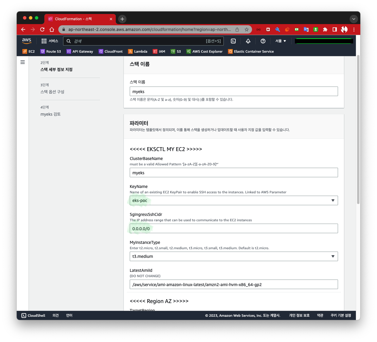 앞서 콘솔에서 확인한 내용과 동일하네요. 자 그럼 이제 eksctl을 사용해서 클러스터를 생성하고 배포까지 해보겠습니다.