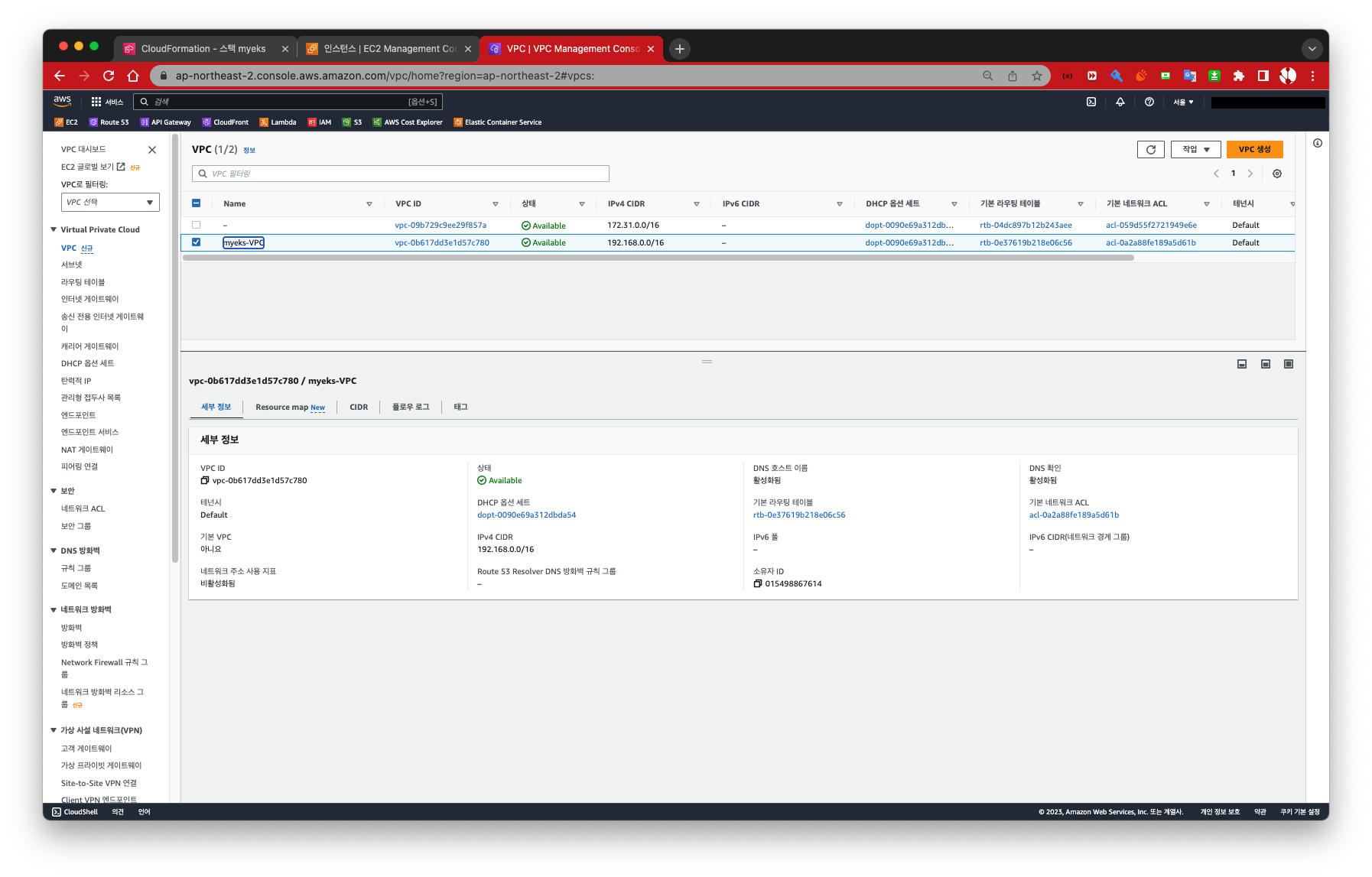 실습은 가시다님께서 준비해주신 AWS CloudFormation template로 진행되었습니다.