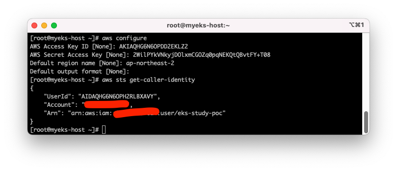 aws cli를 사용하기 위해 AdministratorAccess 정책을 할당한 IAM User를 만들어주고 액세스키, 시크릿키를 할당해줍니다.