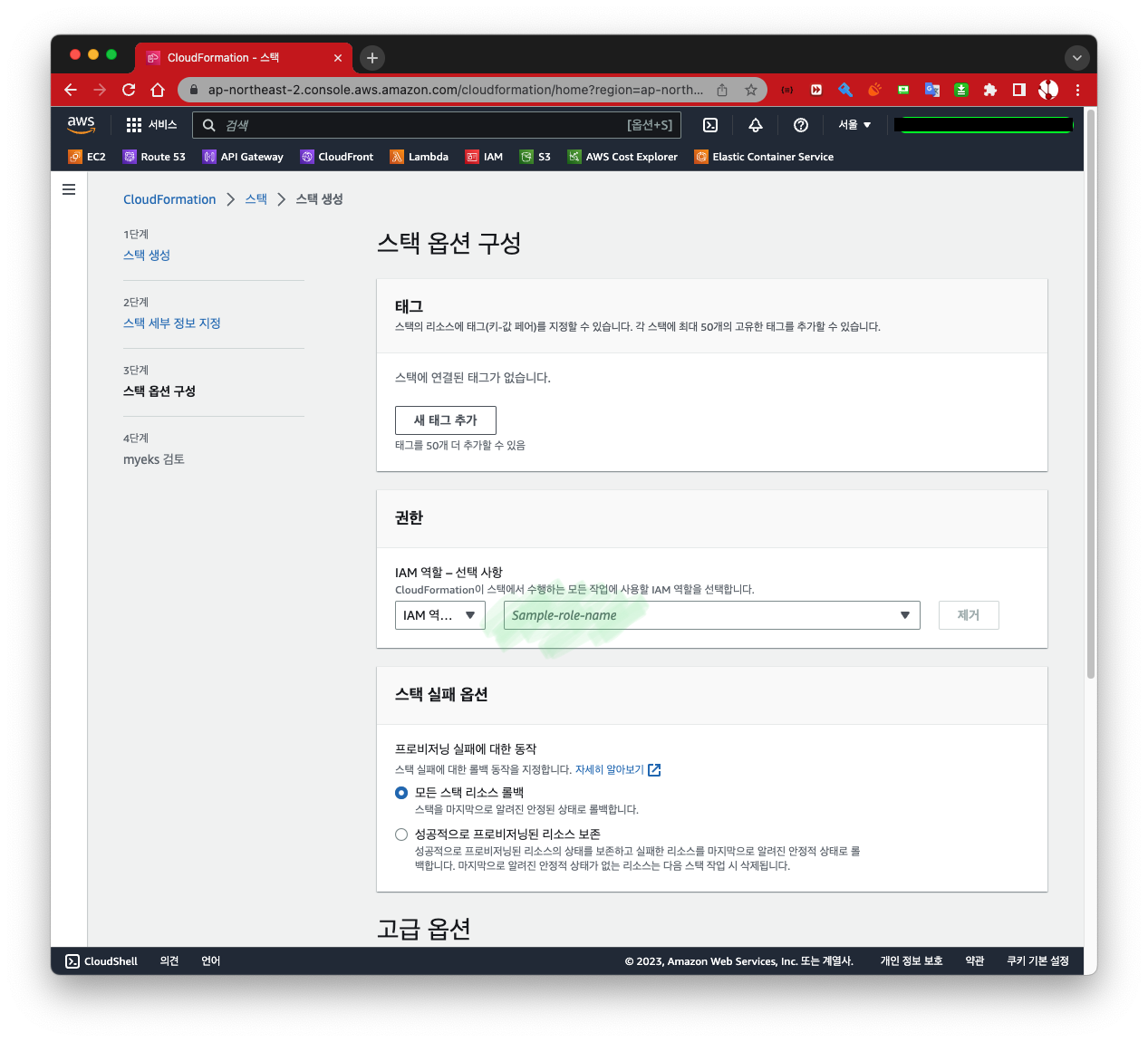 CloudFormation이 EKS를 구성할 수 있는 권한을 가진 IAM Role을 지정해줍니다.