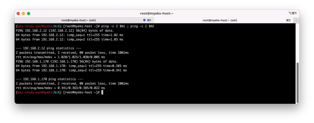 192.168.2.12 노드를 N1, 192.168.1.170노드를 N2 변수로 할당하겠습니다.