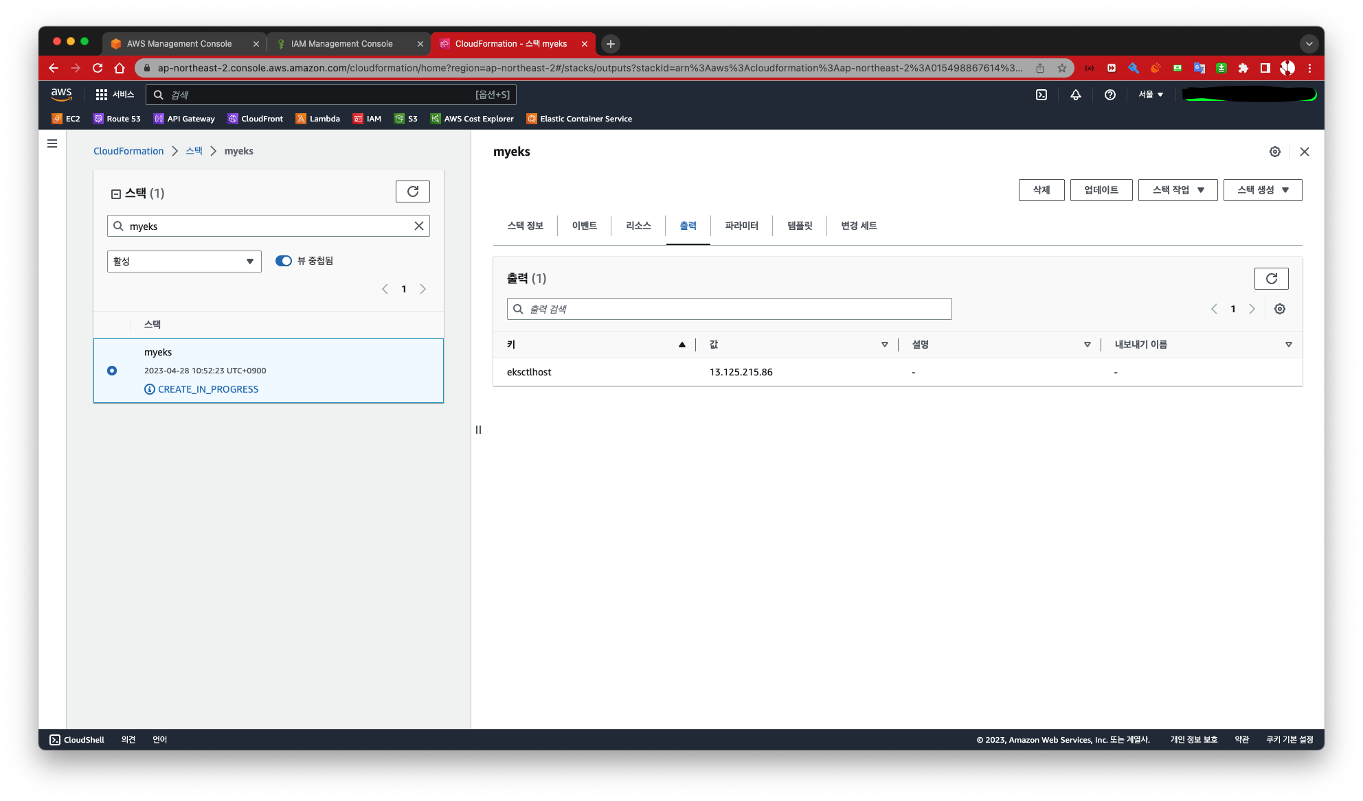 마지막으로, provisioning이 마치면 출력 탭을 눌러 접속할 노드의 IP 정보를 확인할 수 있습니다.