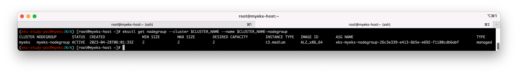 아래 명령어로 노드그룹 정보를 확인할 수 있습니다.