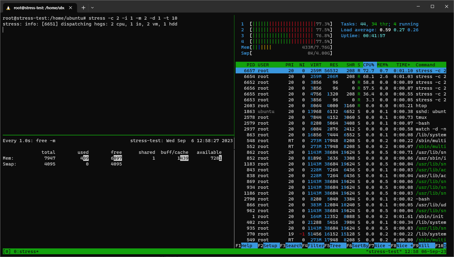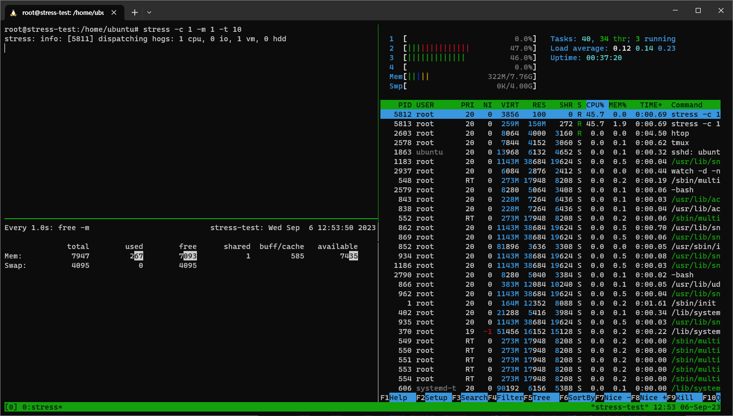 root@stress-test:/home/ubuntu# apt install stress -y -q