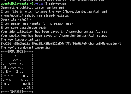 이렇게 ssh-key를 생성하면 /home/ubuntu/.ssh 경로에 id_rsa, id_rsa.pub 파일이 생성됩니다. 생성한 vm 6대에 모두 동일한 key 로 구성합니다.