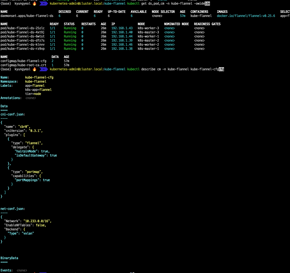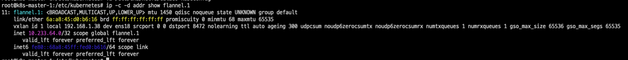 Flannel CNI는 각 노드에 flannel.1 이라는 네트워크 인터페이스를 사용하므로 노드에서 ip 명령어를 통해 네트워크 인터페이스를 확인할 수 있다.