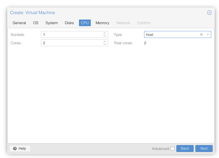 CPU 코어 수를 지정합니다. Advanced 기능을 활용하면 논리코어를 지정할 수 있습니다. (vCPU)
