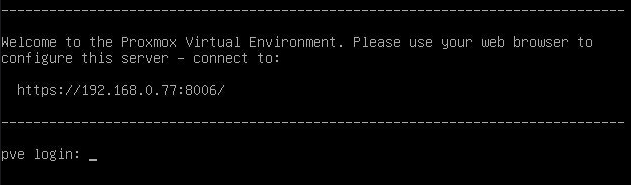 설치가 완료되면 아래와 같은 proxmox 콘솔 접속 ip를 안내합니다. 자 이제 이 PC에서 볼 일은 없습니다. 메인 PC에서 아래 주소로 접속해봅니다.