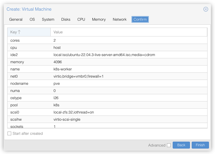 이렇게 마지막에는 요약해서 보여줍니다. 확인 후 Finish 버튼을 눌러 vm 생성을 완료합니다.
