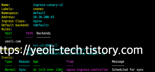 이 weight은 ingress-canary-v2로 들어오는 요청의 비율을 뜻합니다.