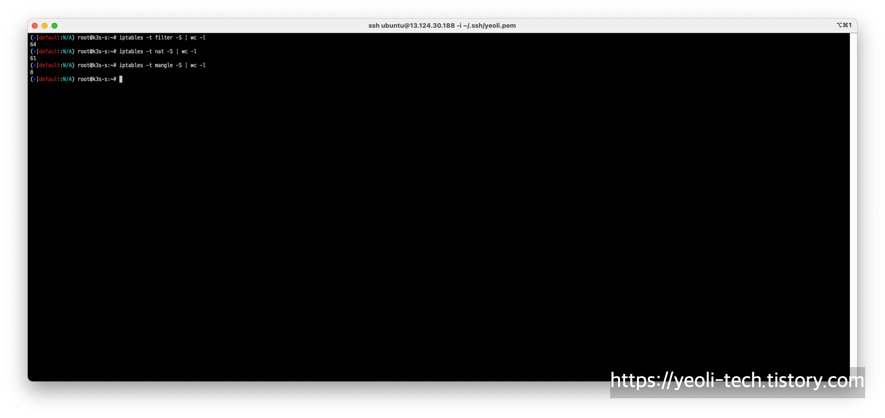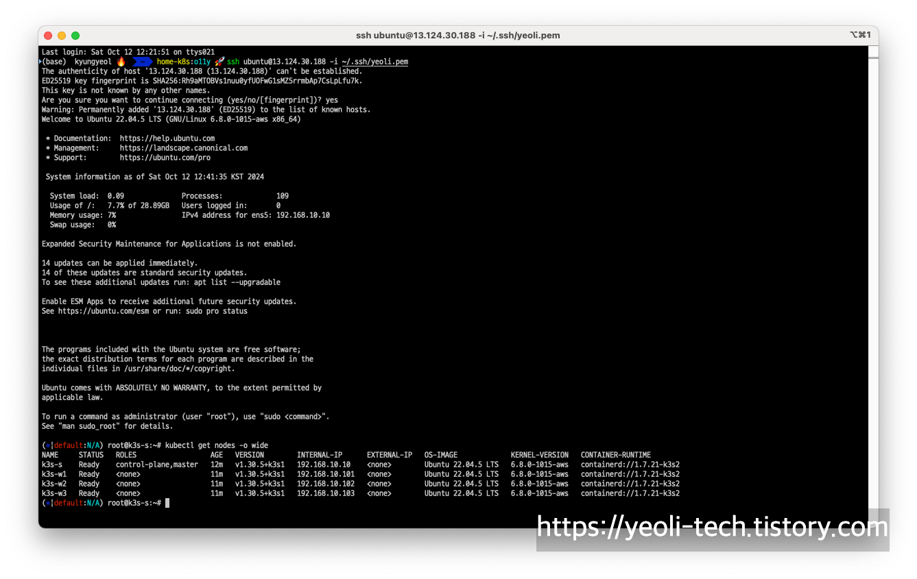 이후, terminal에서 ssh 명령으로 k3s-s 인스턴스에 접속합니다.