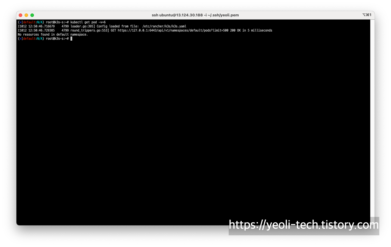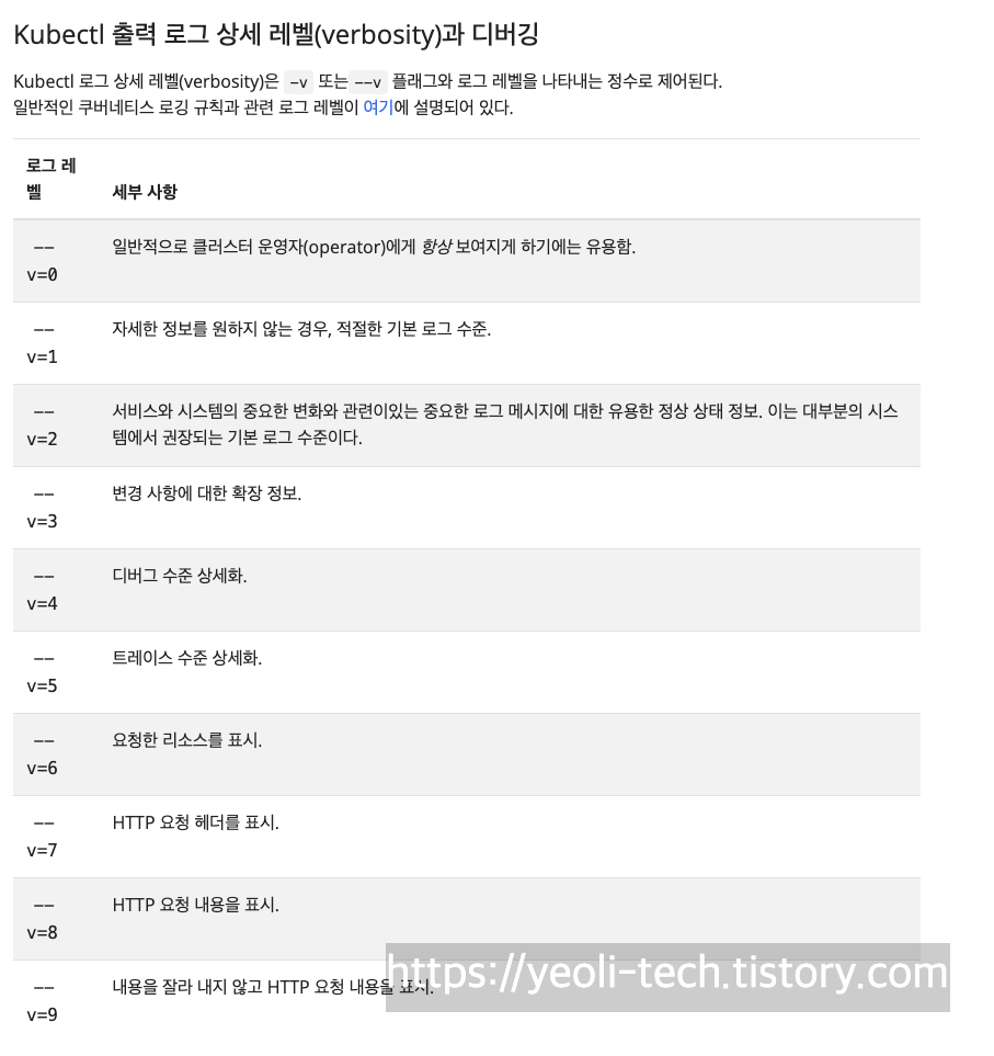 # -v 는 verbose 옵션입니다. kubectl 프로그램의 로그 레벨을 더 높인다는 의미입니다.