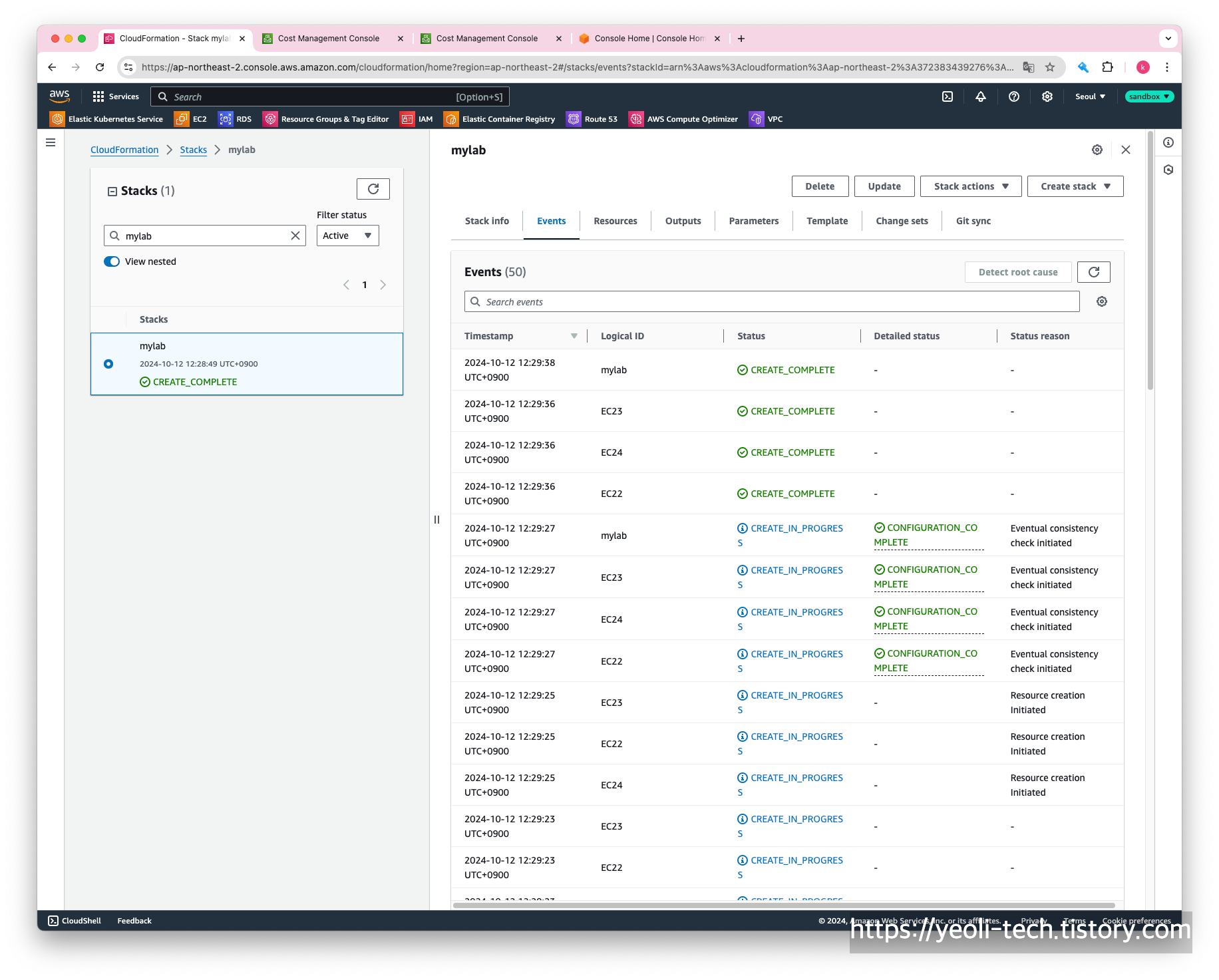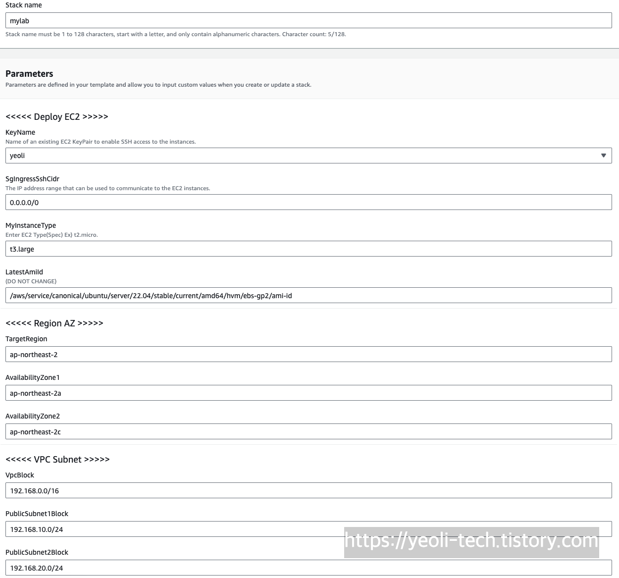 stack name은 적절히 mylab으로 입력했습니다.