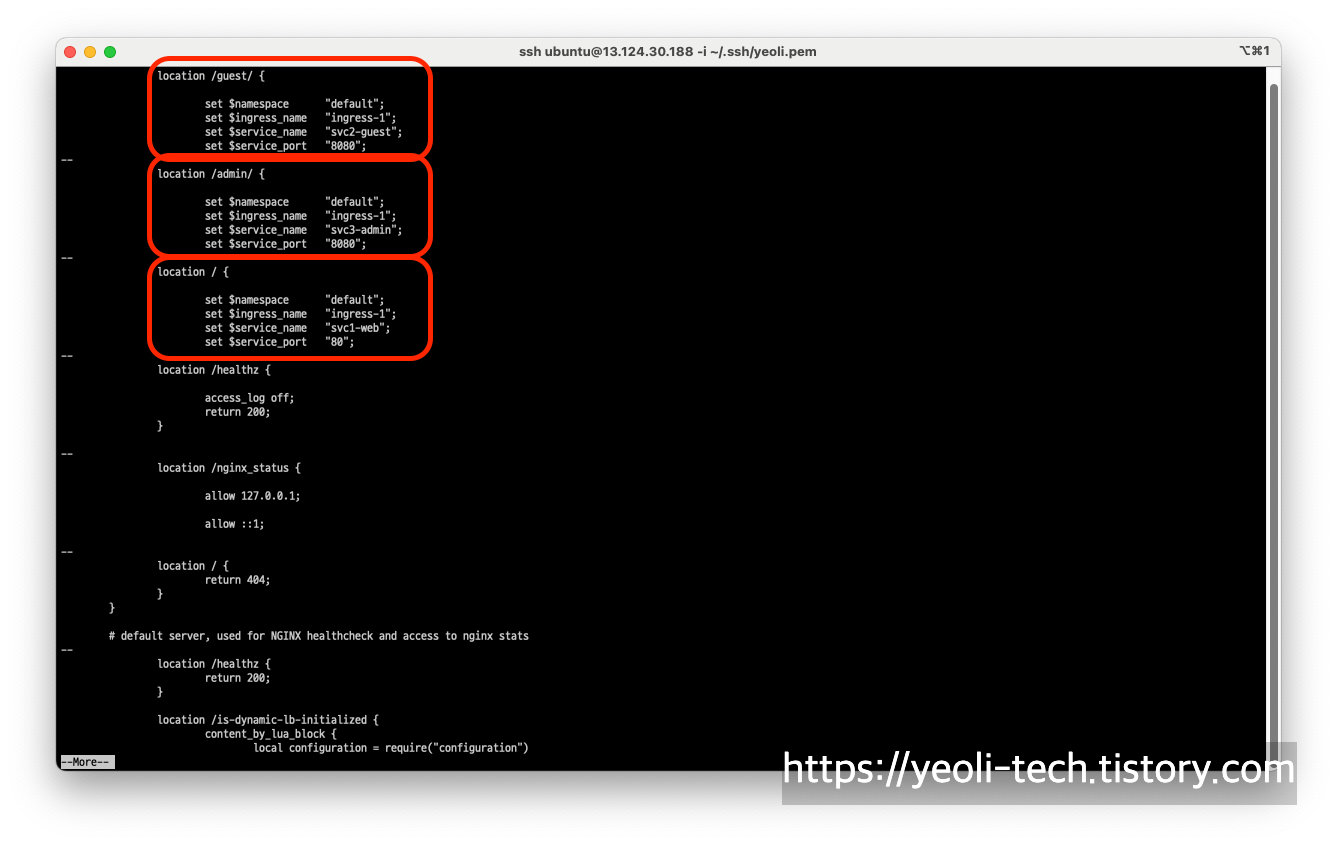 인그레스 컨트롤러에 기록된 Rule은 실제로 인그레스 컨트롤러 파드의 nginx.conf에 적용됩니다.