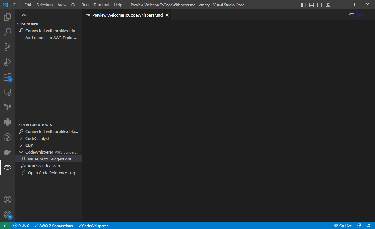 AWS Toolkit을 설치하고, 추가된 AWS Tab을 눌러주세요.