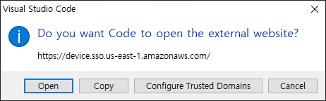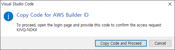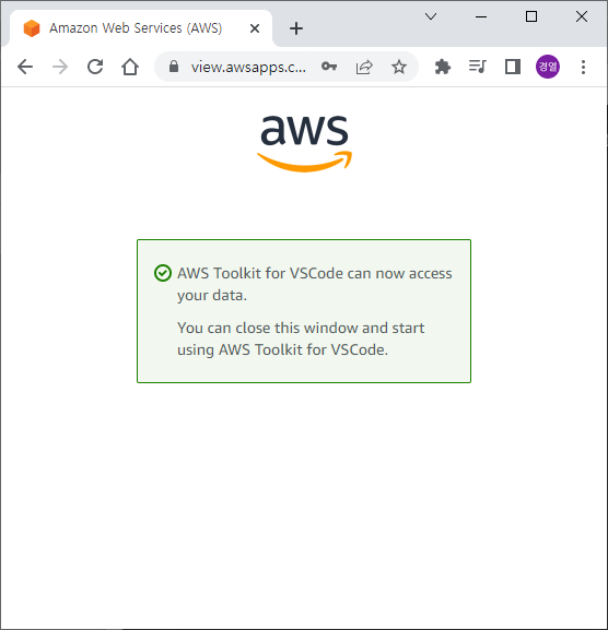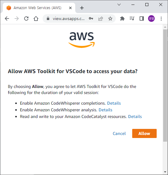 로그인 한 다음, AWS Toolkit 확장도구에서 사용자 데이터에 접근하는 지에 대한 요청을 허가해줍니다.