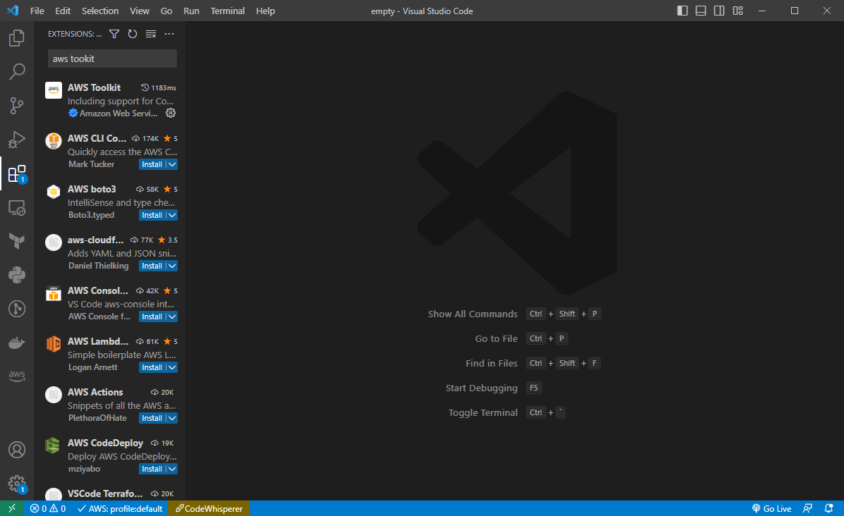 Extension에서 AWS Toolkit을 검색합니다.